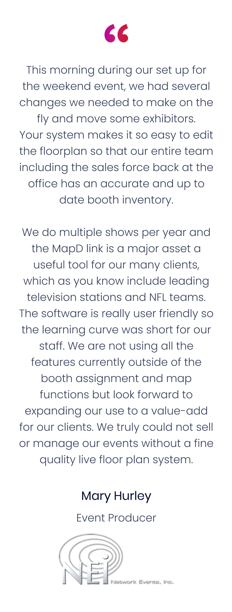 Our goal is to provide experiences tailored to address your engagement needs and desired ROI.